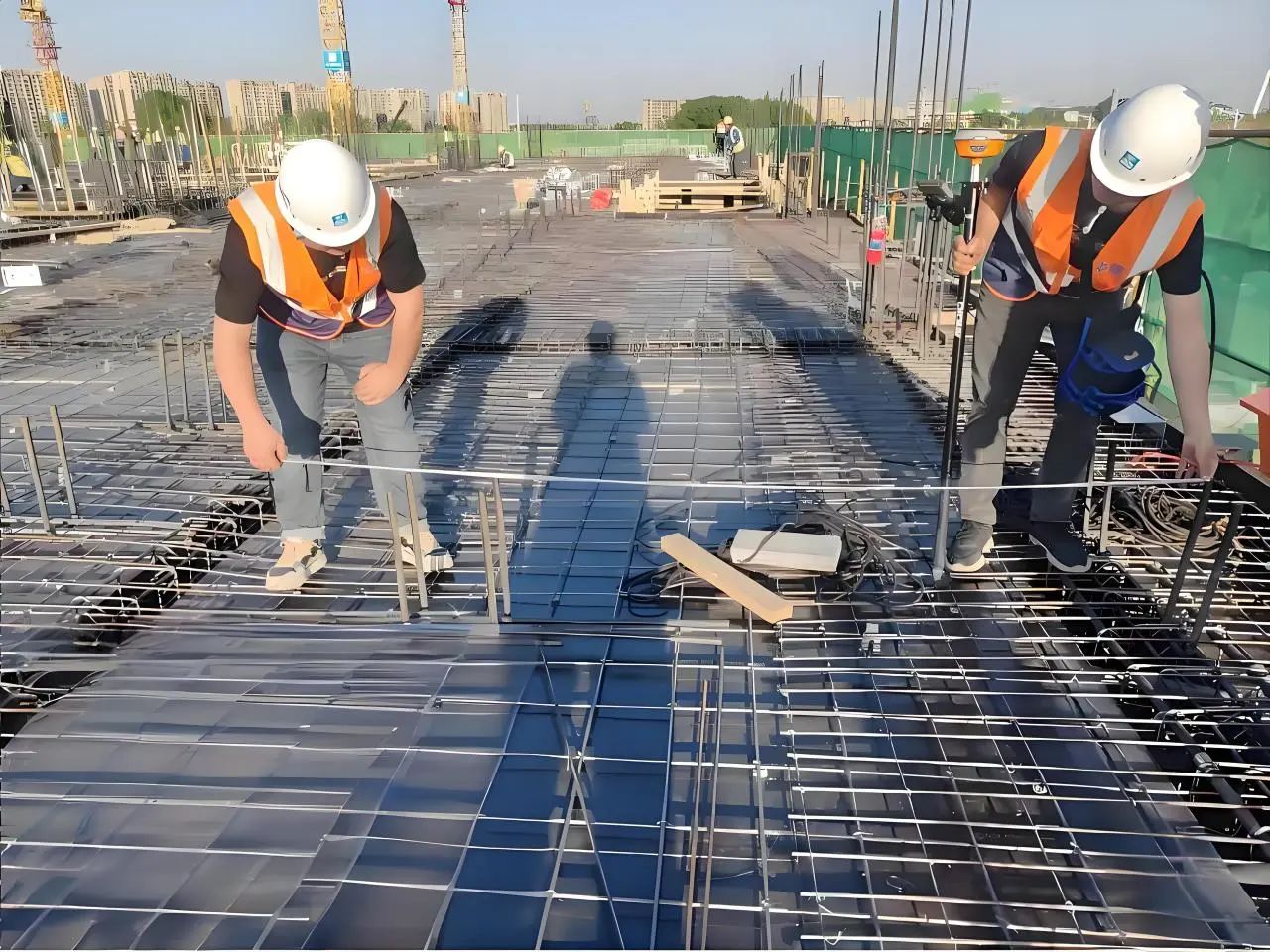 項目在主體結(jié)構(gòu)施工階段,創(chuàng)新采用RTK實時動態(tài)定位技術(shù),懸挑架所有埋件位置支持一鍵定位,20分鐘可完成3000平方米埋件位置復核,采用方圓扣龍骨模板體系技術(shù),有效提高模板垂直度、平整度與施工效率。