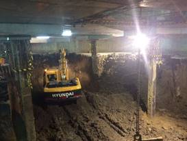 逆做法躍層開挖技術:加大單次開挖深度,一次開挖出兩層結構施工空間,使其中一層結構的施工不占用關鍵線路。本工程B2、B3層采用躍層開挖技術,將B2層樓板的澆筑從關鍵路線移除,有效節省工期約52天。
