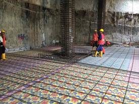 土模法施工技術:利用開挖后的土體作為天然模板,澆筑墊層并鋪設隔離層后綁扎鋼筋、澆筑結構樓板混凝土。通過土模法應用,節省了樓板模板的投入,相比常規模板施工,節約工期約10天。