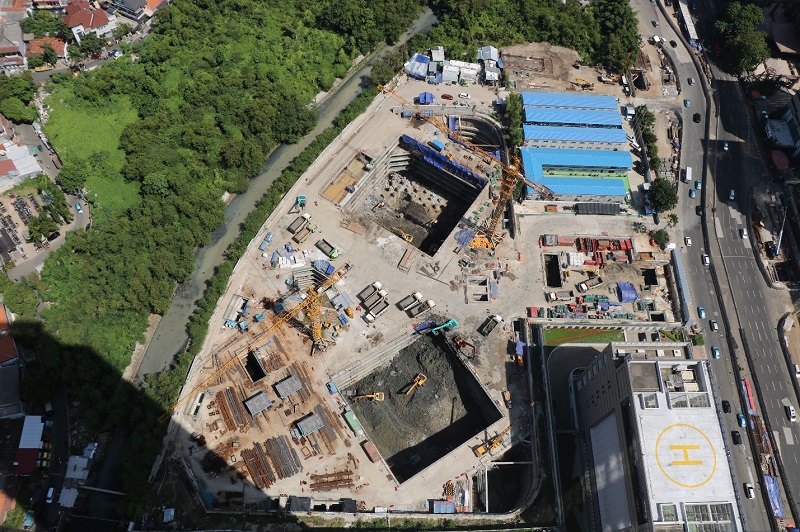 印尼一號雙塔項目建筑面積30.6萬平方米,建筑高度303m,地下七層,地上59層,開挖深度26.77m,局部開挖深度32.2m,屬于超高層、超大深基坑工程。本工程管理的重難點主要為:平面規劃管理、工期進度管理、深化設計管理、中印技術融合及當地資源整合。